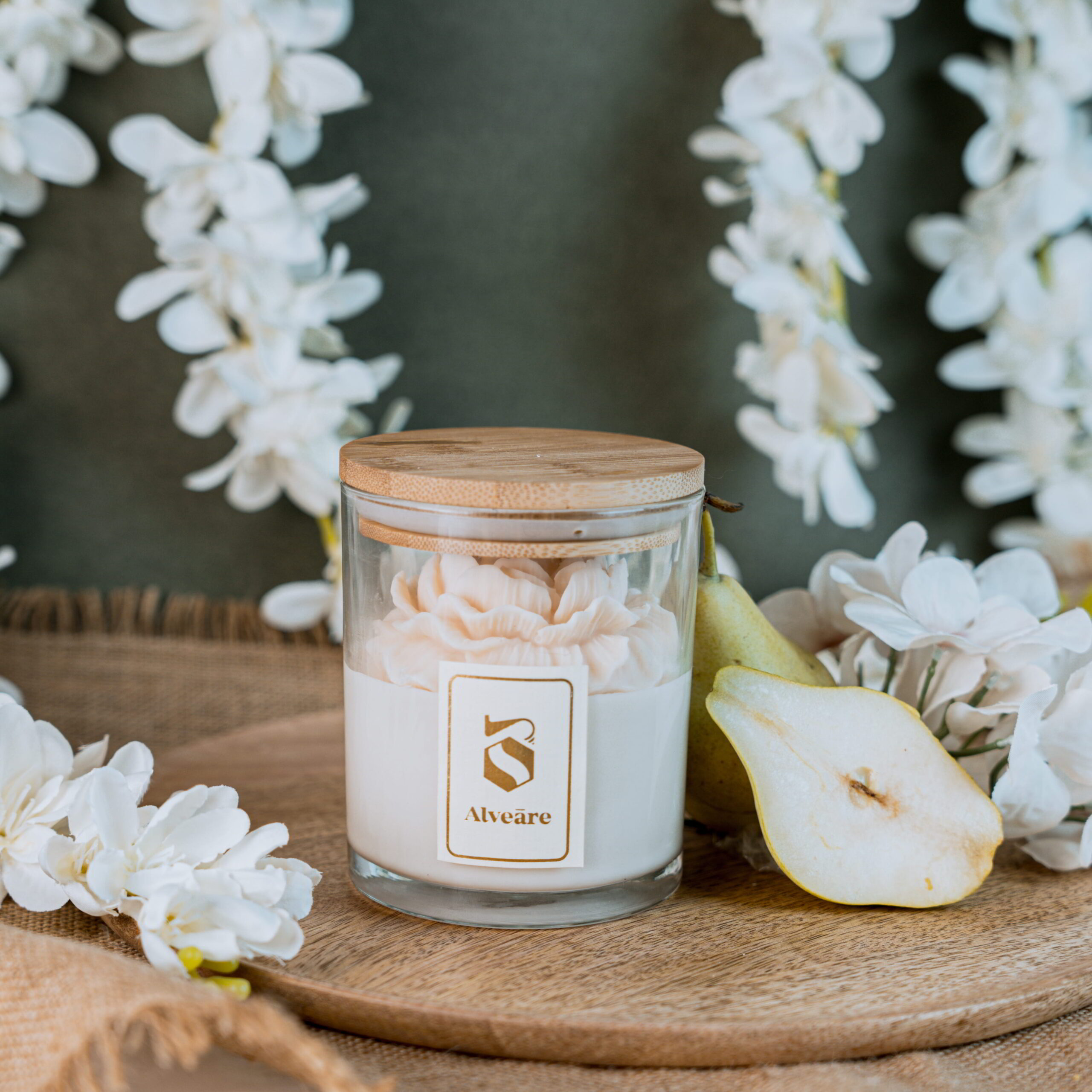 Το αρωματικό Κερί με λουλούδι – Divine Angel με ξύλινο καπάκι είναι μια ολοκληρωμένη αρωματική εμπειρία που ισορροπεί ανάμεσα στη ζουμερή φρεσκάδα του αχλαδιού και στη φωτεινή καθαρότητα του white musk. Πρόκειται για μια αποκλειστική σύνθεση που δημιουργήσαμε στην Alveare, συνδυάζοντας δύο ξεχωριστές αρωματικές βάσεις — Αχλάδι και White Musk — σε ένα signature άρωμα που δεν υπάρχει έτοιμο στην αγορά. Περιλαμβάνει ένα λουλούδι παιώνιας στο επάνω μέρος του κεριού, προσθέτοντας ρομαντική και εκλεπτυσμένη αισθητική που αναδεικνύει τον χαρακτήρα της σύνθεσης. Δημιουργημένο από 100% φυτικό κερί σόγιας, χειροποίητο και σχεδιασμένο με έμφαση στη λεπτομέρεια, αποτελεί μια πρόταση σύγχρονης, προσιτής πολυτέλειας για τον χώρο σου. Δεν είναι απλώς ένα κερί. Είναι ένα στοιχείο ατμόσφαιρας, ένα αντικείμενο αισθητικής, ένα εργαλείο χαλάρωσης.