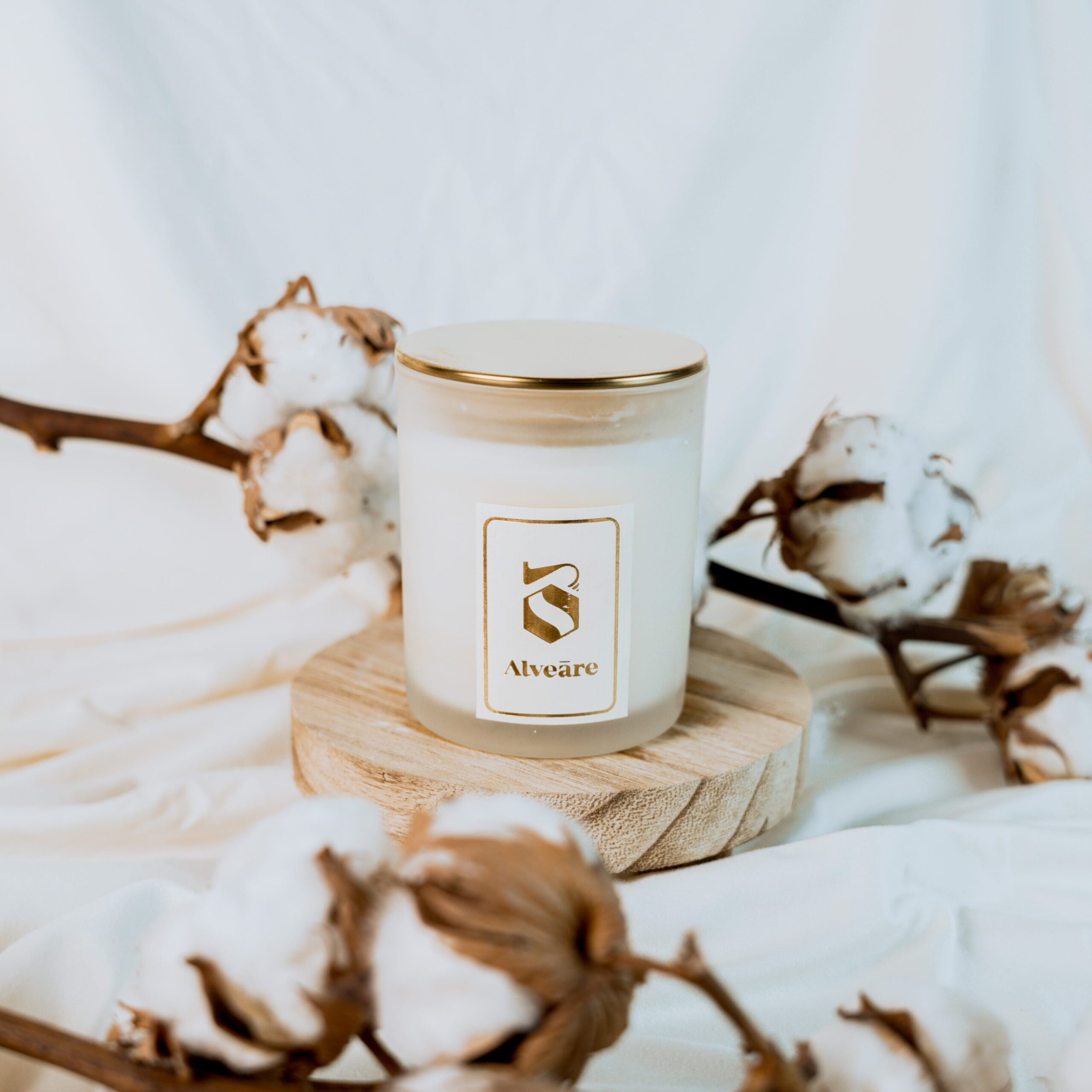 Από την πρώτη στιγμή, το design του αποκαλύπτει τον χαρακτήρα του. Το frosted γυάλινο βάζο δημιουργεί μια αίσθηση φωτεινής καθαρότητας, ενώ το χρυσό μεταλλικό καπάκι προσθέτει organic ισορροπία και γήινη ζεστασιά. Η αντίθεση ανάμεσα στο frosted βάζο και το χρώμα που έχει το μεταλλικό καπάκι εκφράζει απόλυτα τη φιλοσοφία του brand: minimal αλλά εκλεπτυσμένο, cozy αλλά premium. Όταν η φλόγα ανάβει, το φως διαχέεται απαλά μέσα από το γυαλί, δημιουργώντας μια ήρεμη, αέρινη ατμόσφαιρα που θυμίζει λευκά σεντόνια που στεγνώνουν στον ήλιο.